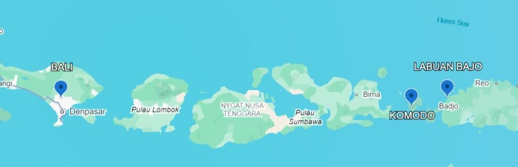 Komodón a térképen jelölt területeken érdemes szállást foglalni.